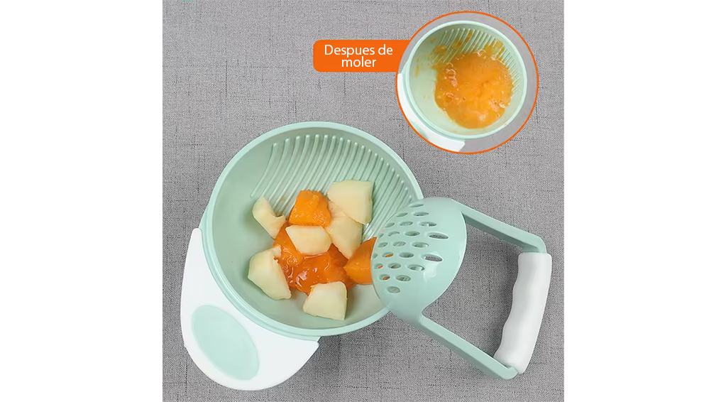 El recipiente para machacar alimentos es fácil y cómodo para que pueda agarrar el mango de la varilla de molienda, fácil de operar.